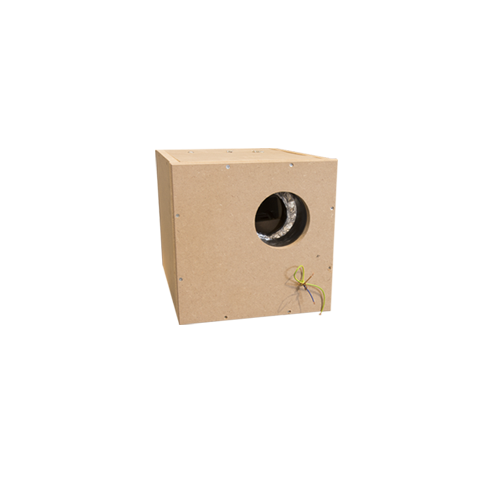 Robuuste behuizing van MDF voor sterke geluidsdemping.